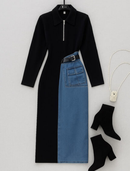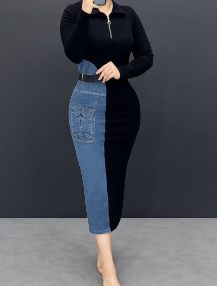پیراهن ماکسی دکمه طلایی کد ۹۰۱۰