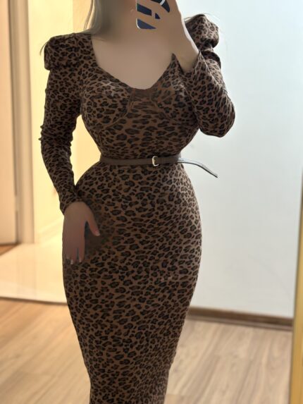 ماکسی سرشانه پفی پلنگی