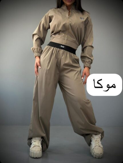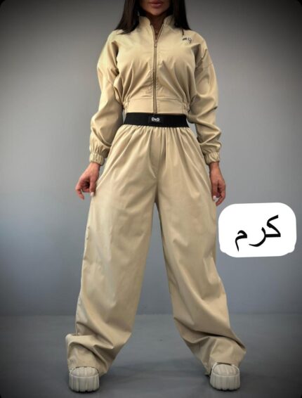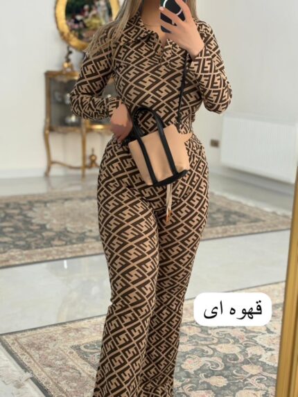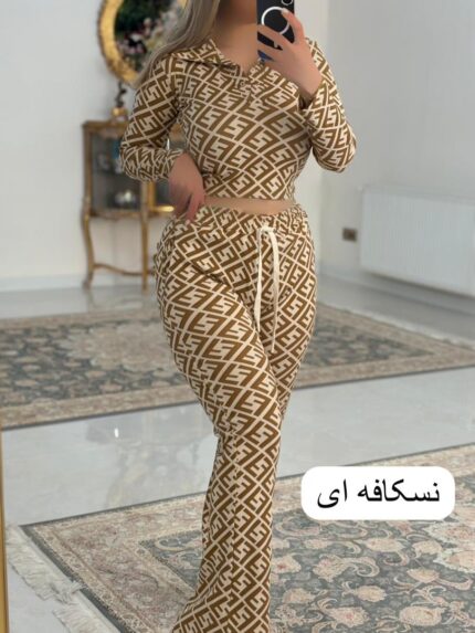 ست کراپ شلوار فندی