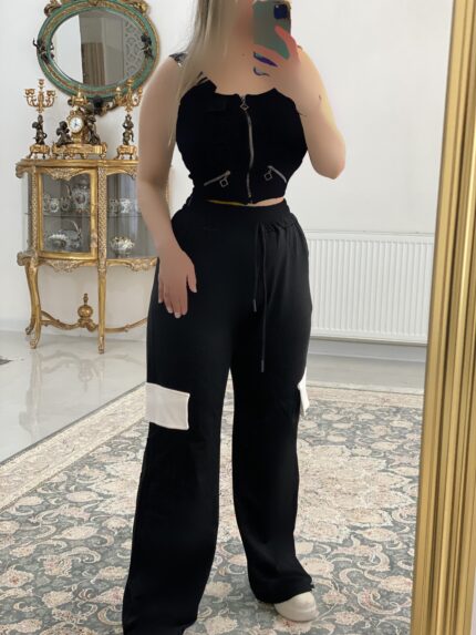ست کراپ شلوار زیپ دار ❌ به علت تک رنگ ماندن ❌ پارچه شلوار گلکسی کراپ کبریتی سایزبندی فری مناسب ( 36 تا 42 ) قد حدود شلوار 108 کراپ 42
