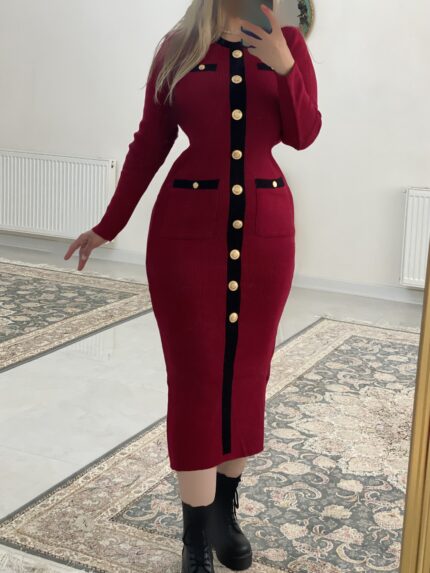 پیراهن ماکسی دکمه طلایی کد ۹۰۱۰