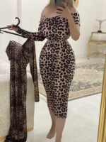 ماکسی سرشانه پفی پلنگی