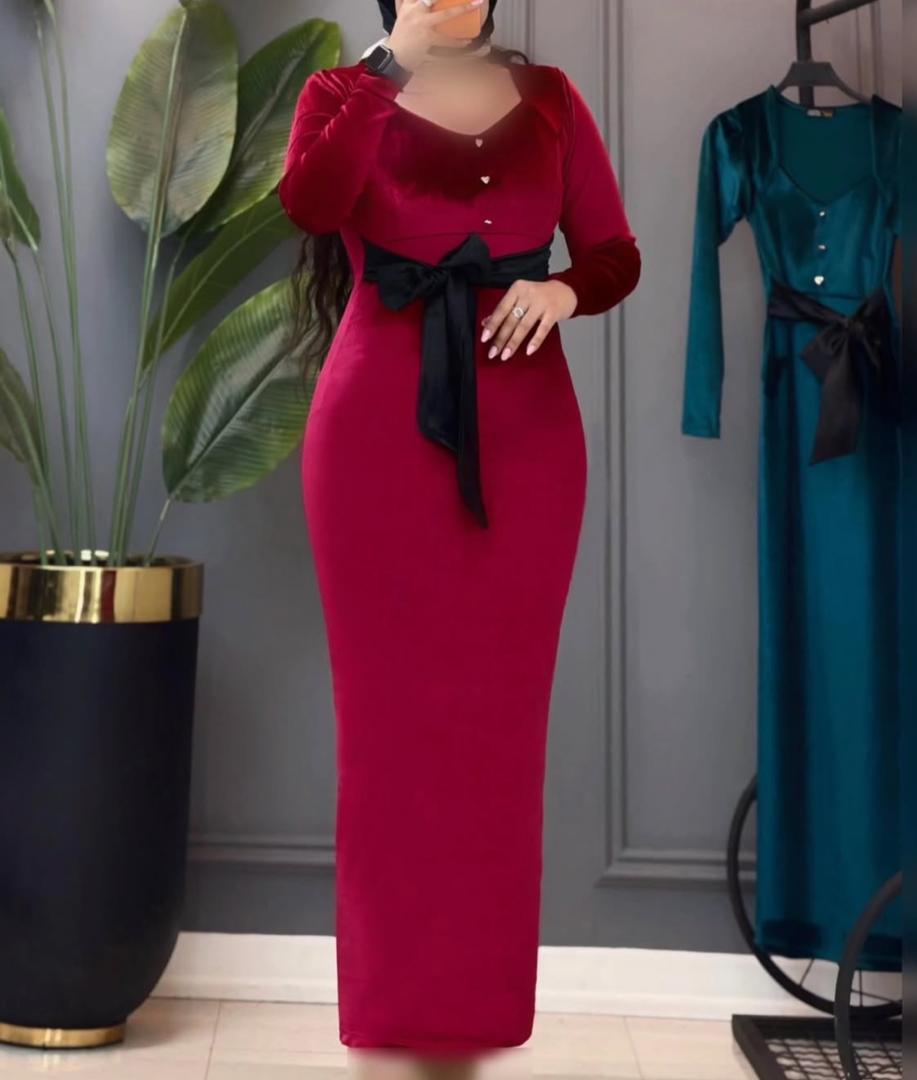 پیراهن ماکسی دکمه طلایی کد ۹۰۱۰