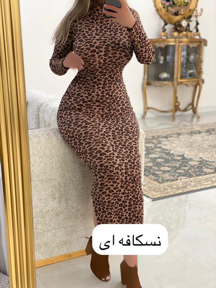 ماکسی یقه ایستاده پلنگی